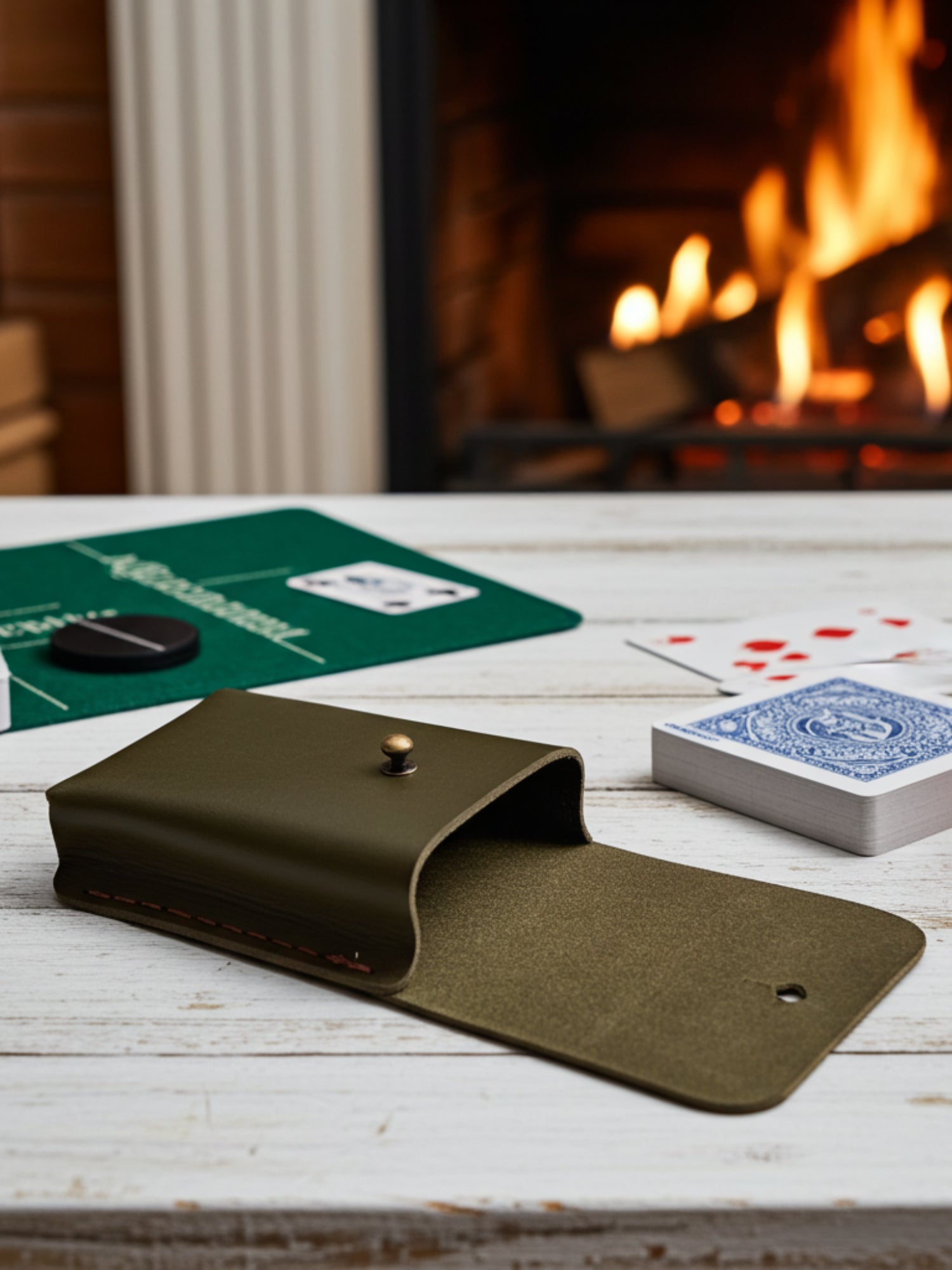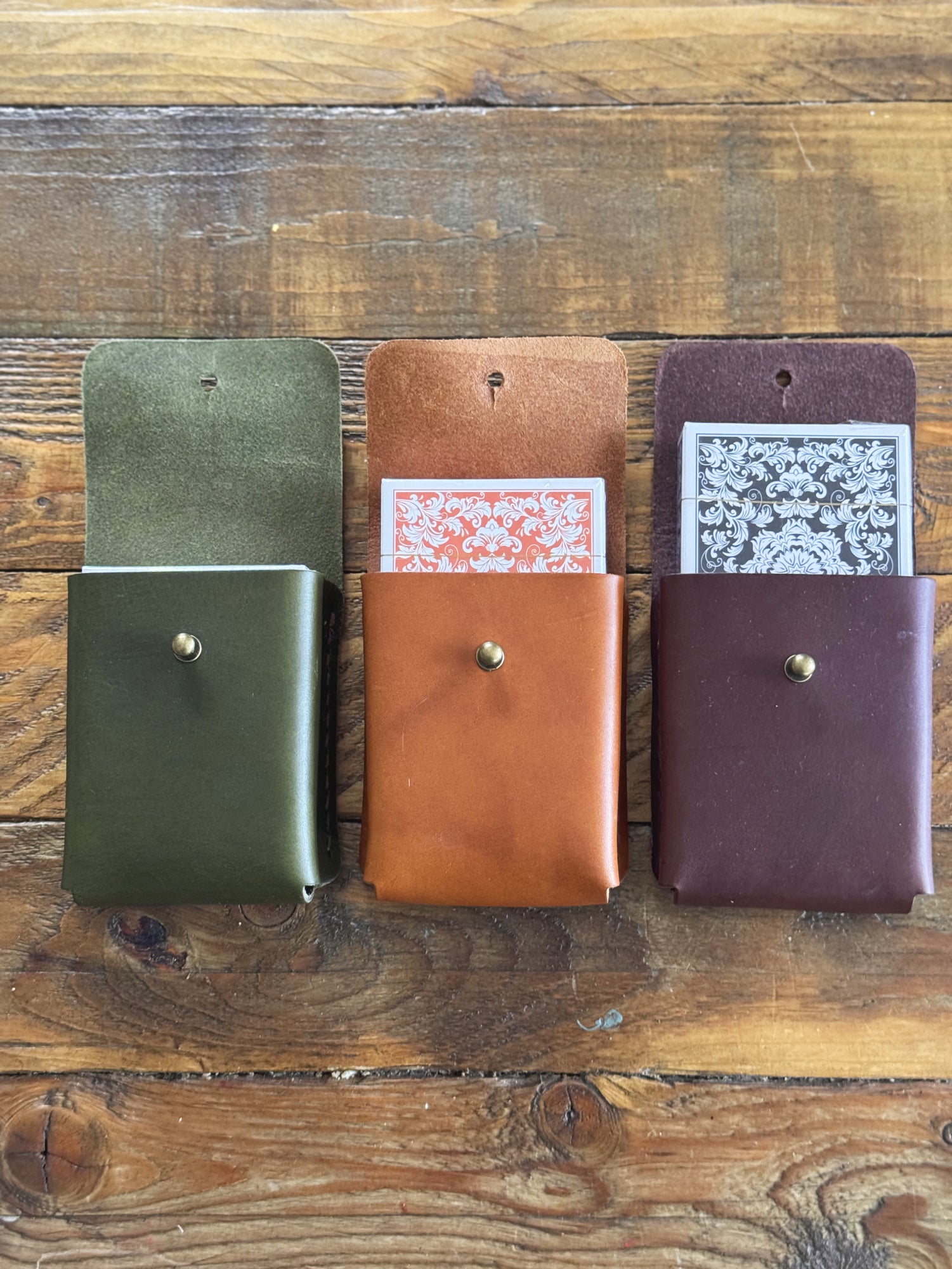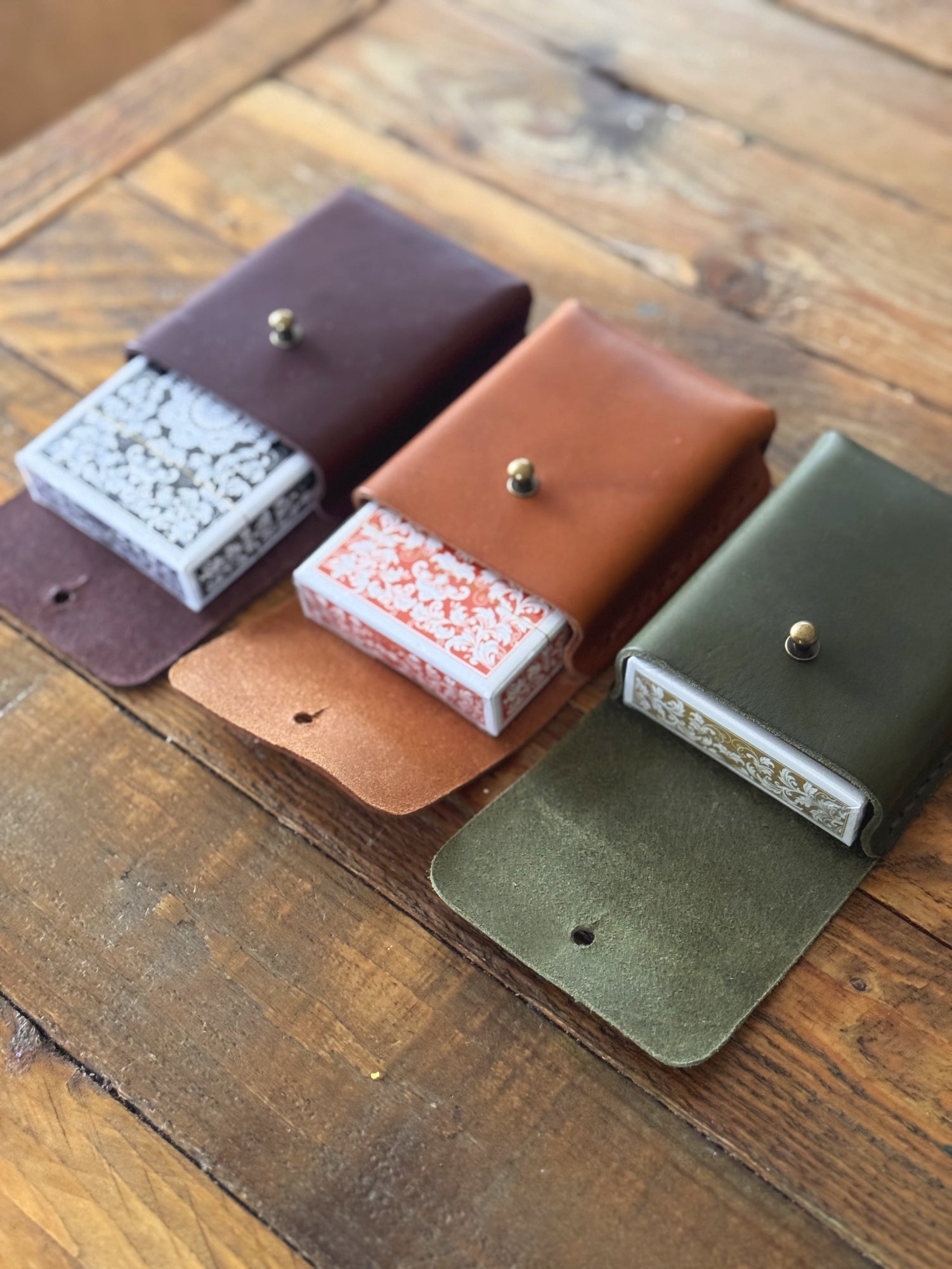 • Handmade leather playing card holder