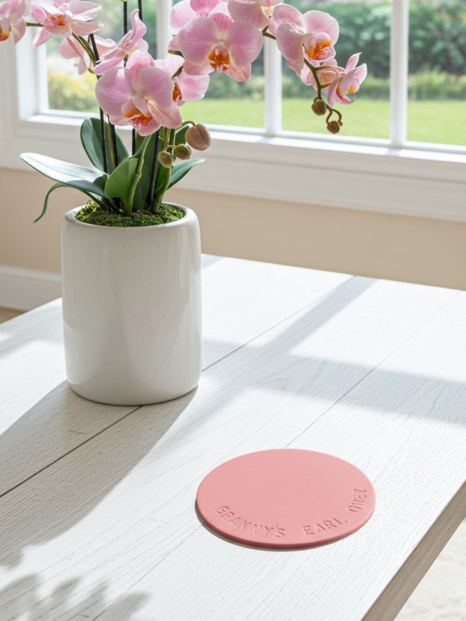 Bring a little order (and a lot of charm) to everyday drinks with our Personalised Leather Drinks Coasters, handcrafted to celebrate favourite brews and the people who love them most. Made in our Surrey studio from premium Italian vegetable-tanned leather, each coaster is individually hand cut, painted and embossed with a subtle message around the edge – from Mum’s Coffee and Granny’s Earl Grey to Nana’s Sparkling Water or Green Tea. A beautiful blend of practicality and sentiment, these leather coasters protect surfaces while adding a thoughtful, personal touch to the home.